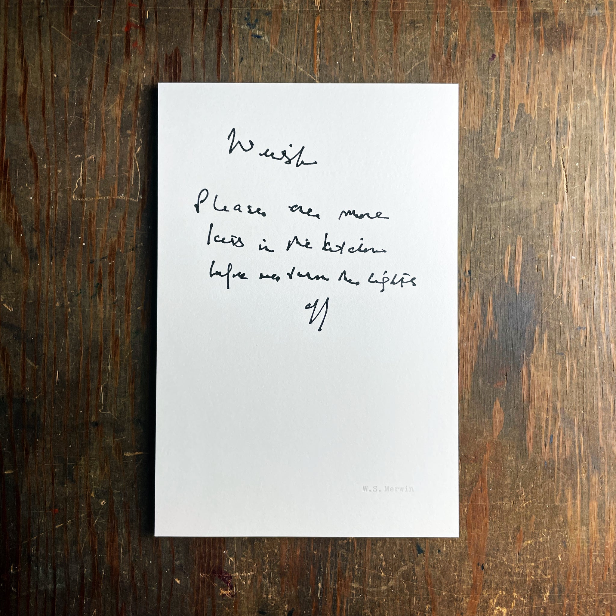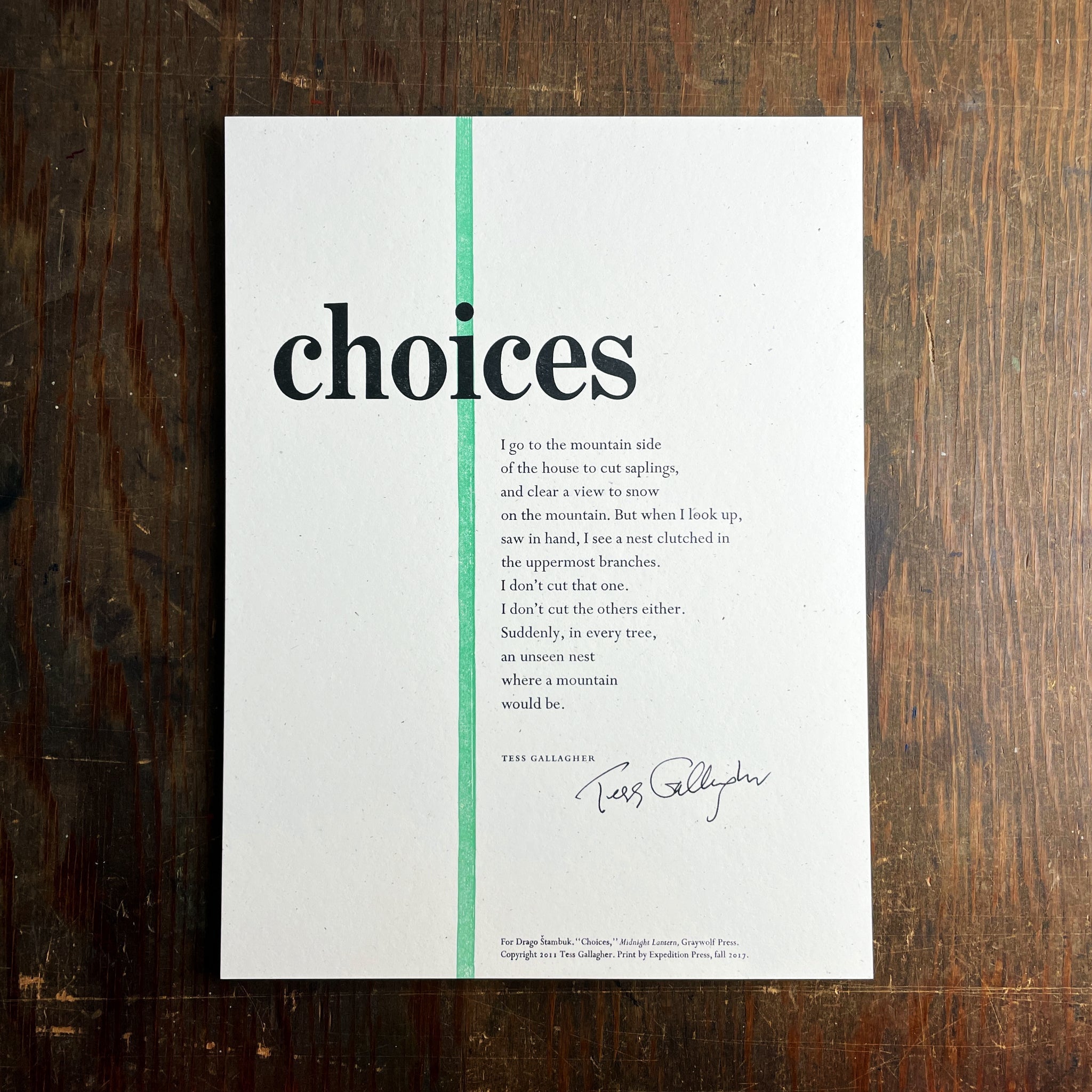 “Every time I purchase a print from you, I feel good about supporting your artistry and that of the poets whose work you print. I feel good knowing that the purchase of certain prints contributes to humanitarian concerns. I feel good about the beauty that I add to my own living space when I frame a poem and place it where it meets the eye on a daily basis. I feel good about the appreciative response I receive from those I send printed poems to as gifts. There is nothing about my experience with Expedition Press that is not gratifying.” — Kim T.