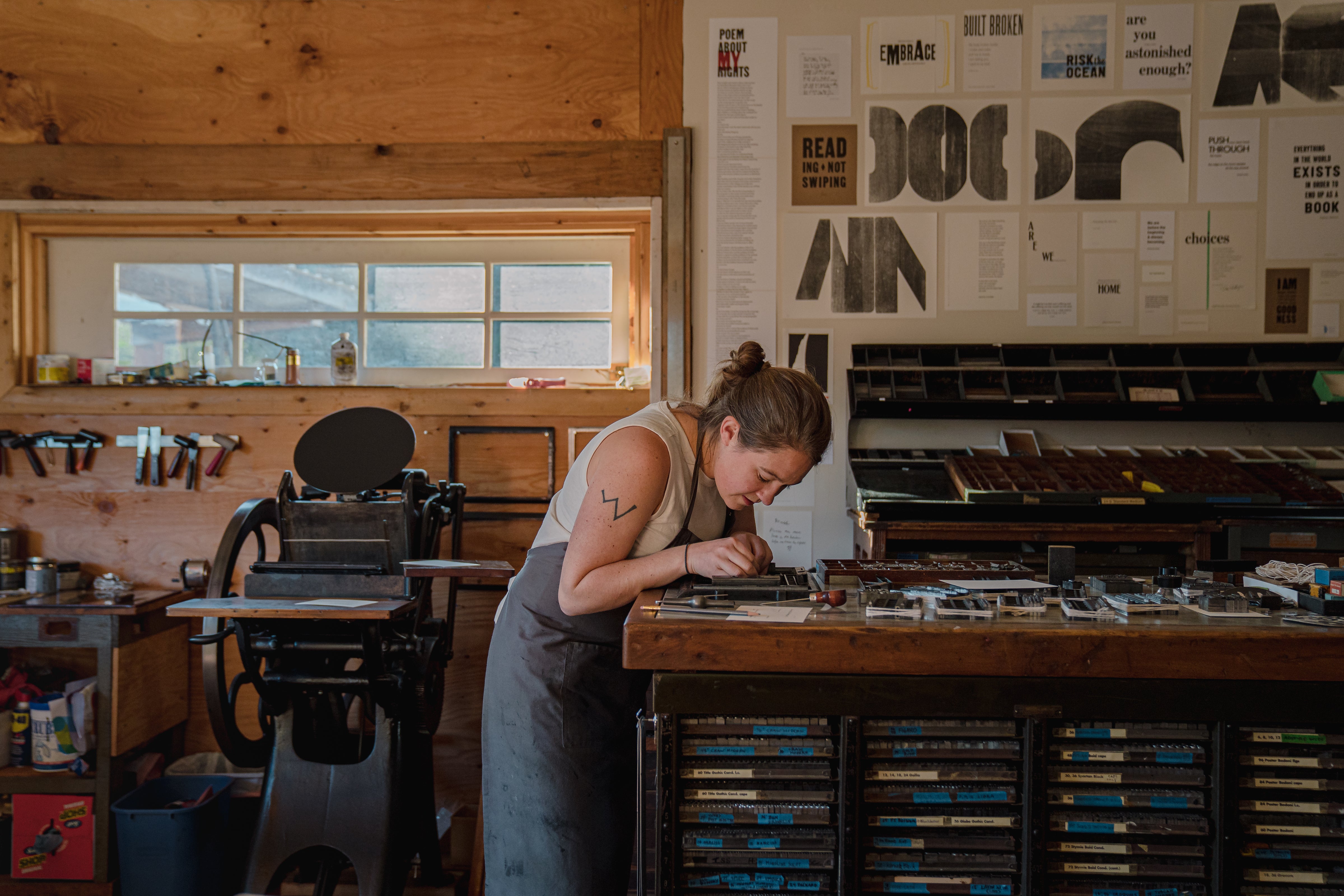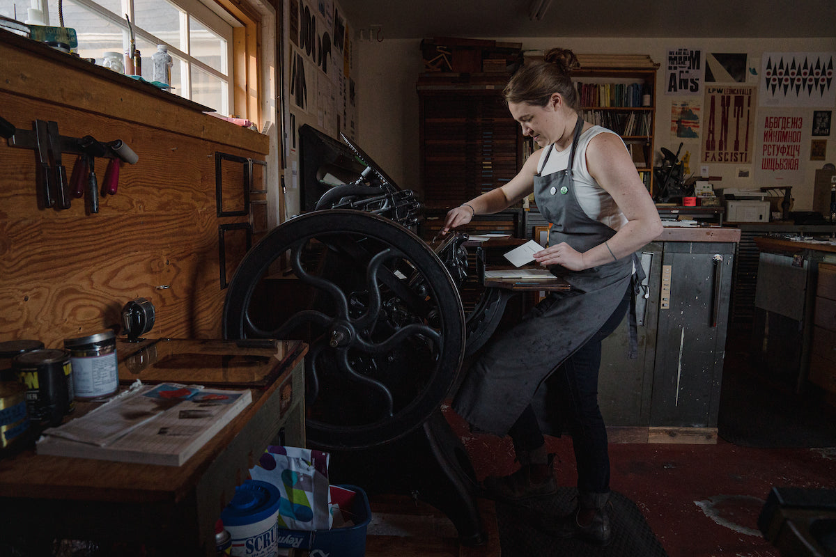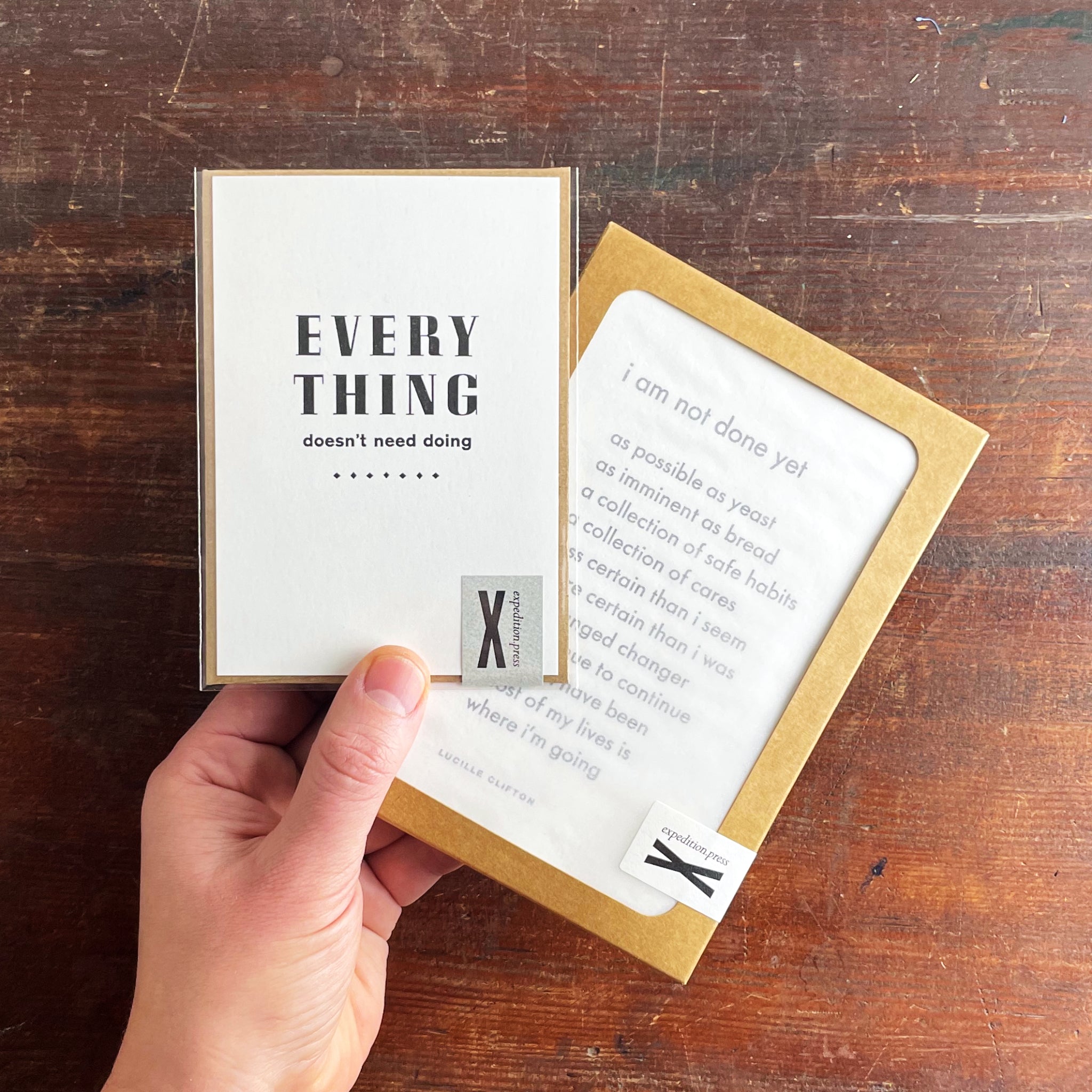 Letterpress printed from handset type with archival ink on renewable paper, our prints are made to last. Almost all our packaging is 100% recycled and recyclable, down to the tags. Singles come in compostable cello sleeves and boxes have recyclable glassine protective sheets.