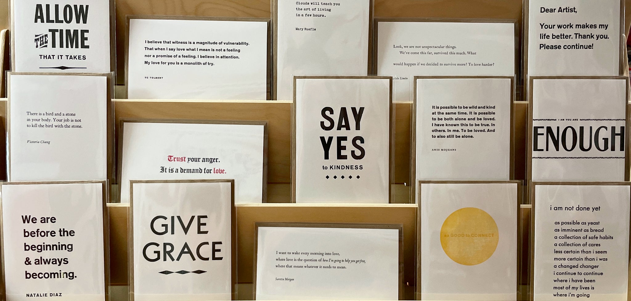 We’re known for heart-stopping poetry selections and kind-hearted notes with simple, striking typographic designs. Our line is about connection: to oneself, to others, to books and authors who offer language that helps us live better.